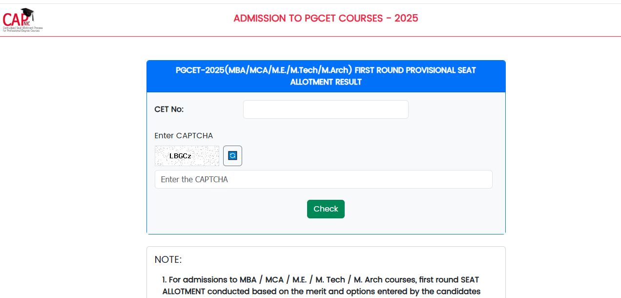नई दिल्ली: कर्नाटक परीक्षा प्राधिकरण (KEA) ने कर्नाटक PGCET 2025 राउंड 1 प्रोविजनल सीट आवंटन परिणाम 3 अक्टूबर 2025 को जारी कर दिया है। कर्नाटक के विभिन्न संस्थानों में MTech, ME, MBA, MCA और MArch पाठ्यक्रमों में प्रवेश लेने वाले उम्मीदवार अब अपनी सीट आवंटन स्थिति को अपने CET नंबर का उपयोग करके आधिकारिक वेबसाइट पर देख सकते हैं।