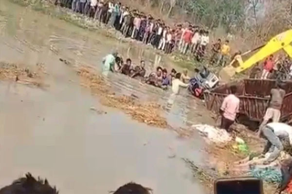 कासगंज : उत्तर प्रदेश के कासगंज जिले में शनिवार को एक ट्रैक्टर बेकाबू होकर तालाब में गिर गया। हादसे में 15 लोगों की मौत हो गई है। मौके पर चीख-पुकार मची है। ग्रामीण और पुलिसकर्मी राहत और बचाव कार्य में जुटे हैं। कासगंज की जिलाधिकारी सुधा वर्मा ने बताया कि पटियाली-दरियावगंज मार्ग पर शनिवार को बेकाबू ट्रैक्टर ट्रॉली तालाब में गिर गई। ट्रॉली में सवार सात बच्चे और आठ महिलाओं को मौत हो गई है।