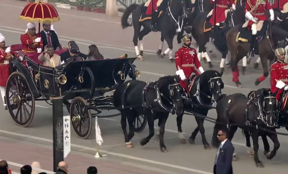 75वां गणतंत्र दिवस : कर्तव्य पथ पर शंखनाद से परेड की शुरुआत, 40 साल बाद पारंपरिक बग्गी में आईं राष्ट्रपति