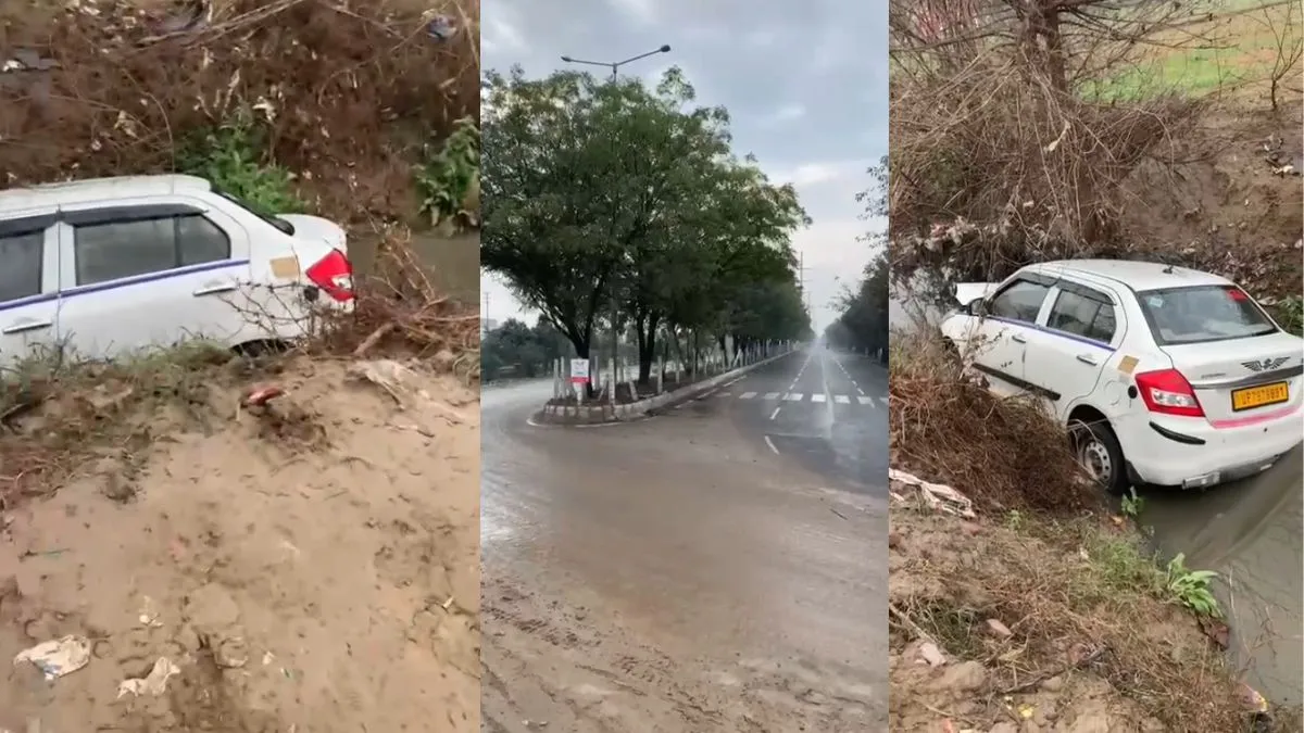 ग्रेटर नोएडा में 90 डिग्री मोड़ बना फिर हादसे की वजह, कोहरे में नाले में गिरी कार; कम पानी होने से बची दो जिंदगियां