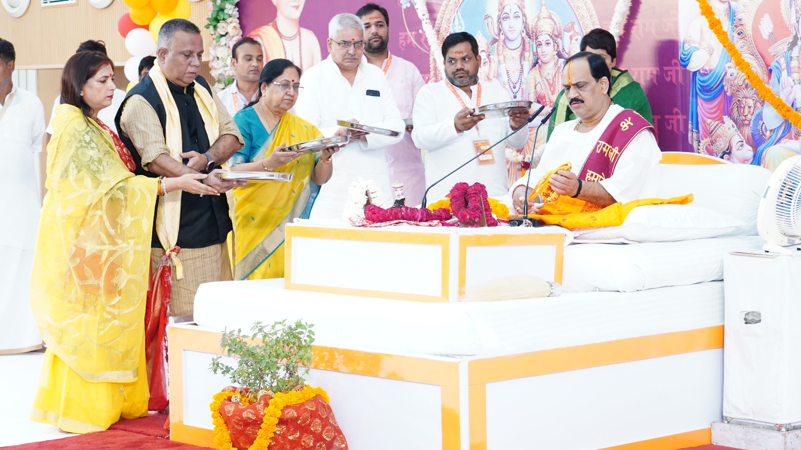 इस कथा के प्रधान संकल्पी उत्तर प्रदेश के परिवहन मंत्री दयाशंकर सिंह की पूजनीया माता जी ने और दयाल ग्रुप के चेयरमैन श्री राजेश सिंह दयाल ने सपरिवार व्यास पीठ पर उपस्थित भगवान का पूजन किया। उत्तर प्रदेश सरकार की कैबिनेट मंत्री श्रीमती बेबी रानी मौर्य, मंत्री मयंकेश्वर शरण सिंह, मंत्री दिनेश प्रताप सिंह , डॉक्टर श्रद्धा राजपूत, भारत दीक्षित जी , कौशल जी , प्रशांत भाटिया जी सहित विभिन्न विधायक और कई विशिष्ट अतिथि कथा में उपस्थित रहे। धनुष भंग प्रसंग का श्रवण करने के लिय बड़ी संख्या में उपस्थित श्रोतागण को महाराज जी के द्वारा गाए गए दर्जनों भजनों पर झूमते हुए देखा गया।