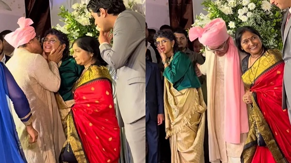 रिसेप्शन के दौरान आमिर खान का पूरा परिवार (रीना दत्ता, किरण राव और तीनों बच्चे) स्टेज पर पहुंचा। पहले आमिर खान ने अपने पूरे परिवार के साथ तस्वीरें खिंचवाई और फिर अपनी एक्स वाइफ किरण राव के पास गए। उन्होंने किरण से कुछ कहा और फिर उनके गाल पर किस करने लगे। इस दौरान, आइरा की मां और उनकी पहली एक्स वाइफ रीना दत्ता उन्हें देखती रह गईं।