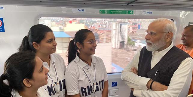 बता दें कि इससे पहले पीएम मोदी ने दिल्ली-मेरठ आरआरटीएस गलियारे के 17 किलोमीटर लंबे प्राथमिकता वाले खंड का शुक्रवार को उद्घाटन किया और इस खंड पर चलने वली ‘नमो भारत’ ट्रेन में यात्रा की। मोदी ने साहिबाबाद और दुहाई डिपो स्टेशन को जोड़ने वाली इस ट्रेन को हरी झंडी दिखाई और इसी के साथ भारत में ‘रीजनल रैपिड ट्रांजिट सिस्टम’ (आरआरटीएस) की शुरुआत हो गई। यह ट्रेन 180 किलोमीटर प्रति घंटे की रफ्तार से दौड़ सकती है। प्रधानमंत्री को यात्रियों और ट्रेन के चालक दल के सदस्यों से बात करते भी देखा गया।