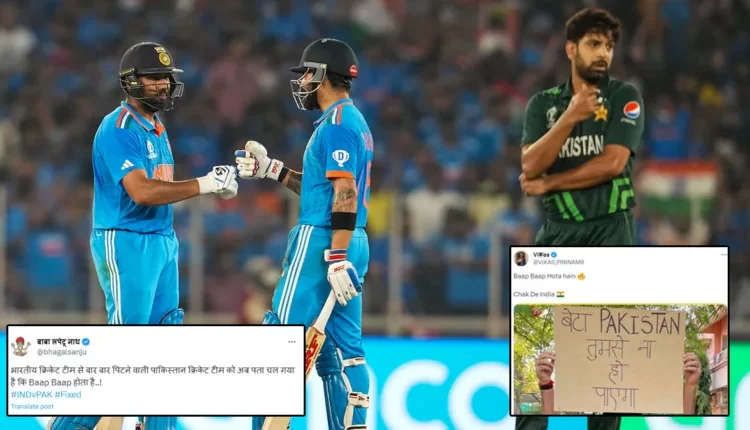 वहीं भारत के जीत के बाद कई फैंस ट्वीट्स पर पाकिस्तानियों के जमकर मजे ले रहे हैं। सोशल मीडिया पर भारत (IND vs PAK) की ऐतिहासिक जीत के बाद फैंस के रिएक्शंस खूब वायरल हो रहे हैं। अहमदाबाद के नरेंद्र मोदी स्टेडियम के बाहर जीत के बाद लोगों ने जश्न मनाया।
