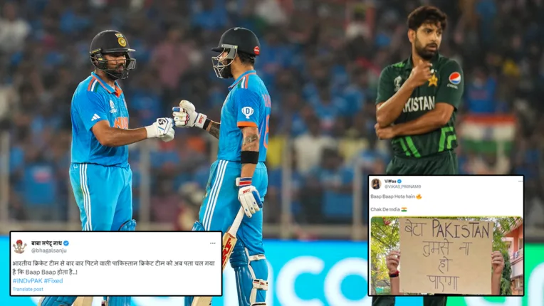 पाकिस्तान के खिलाफ भारत की विश्व कप में 8वीं जीत के बाद फैंस में ख़ुशी की लहर है। सोशल मीडिया पर फैंस ट्वीट कर पाकिस्तान के मजे ले रहे है। बाबा लपेटो नमक ट्विटर यूजर ने लिखा, भारतीय क्रिकेट टीम से बार बार पिटने वाली पाकिस्तान क्रिकेट टीम को अब पता चल गया है कि Baap Baap होता है..!