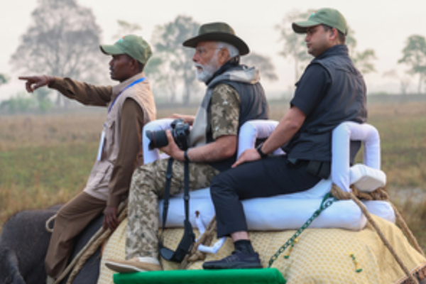 नरेंद्र मोदी मार्च में काजीरंगा राष्ट्रीय उद्यान में रात बिताने वाले देश के पहले प्रधानमंत्री बने। अपनी यात्रा के दौरान उन्होंने हाथी और जीप सफारी का आनंद लिया और वन अधिकारियों को पर्यटकों की संख्या बढ़ाने के लिए सुझाव दिए।