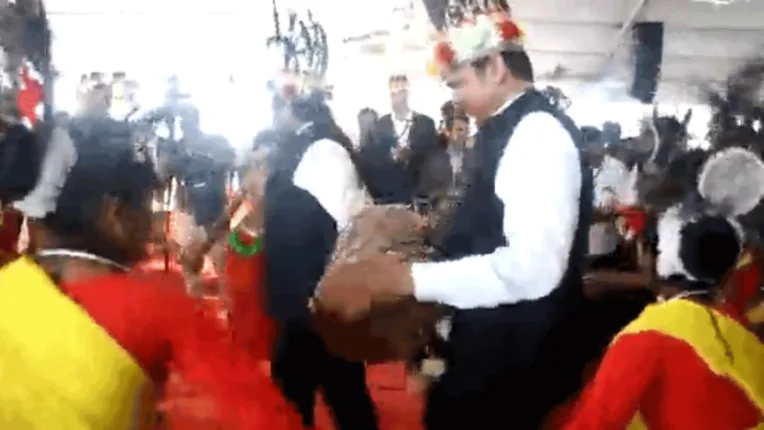 वहीं इस मौके पर हमेशा हंसमुख और विनम्र उप मुख्यमंत्री देवेंद्र फडणवीस का एक और चहरा देखने को मिला, जब वे स्थानीय आदिवासी समूह के नृत्य को बड़े ही तन्मयता से देखते और सुनते देखे गए। फडणवीस, आदिवासी समूह के इस शानदार प्रस्तुति से इतना मंत्रमुग्ध हुए, कि वे खुद को रोक न सके और इन कलकारों के साथ ढोलक पर थाप लगाते हुए स्वयं भी इनके साथ बड़े ही कुशलता से कदमों से कदमों को मिलाकर नृत्य करने लगे। उनके साथ ही मुख्यमंत्री शिंदे और उप मुख्यमंत्री अजित पवार ने भी तालियों के साथ समूह का अभिवादन किया। इस बाबत फडणवीस ने एक ट्वीट भी साझा किया।