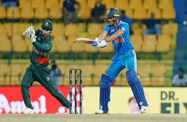 कोलंबो : एशिया कप के सुपर-4 के आखिरी मुकाबला में बांग्लादेश क्रिकेट टीम ने भारतीय क्रिकेट टीम को छह रन से हराया दिया है। टॉस हारकर पहले बल्लेबाजी करते हुए बांग्लादेश की टीम ने 8 विकेट पर 265 रन बनाए थे। जवाब में भारतीय टीम शुभमन गिल के शतक के बावजूद 49.5 ओवर में 259 रन पर सिमट गई। गिल ने 133 गेंदों में 121 रनों की पारी खेली जबकि अक्षर पटेल ने 34 गेंद में 42 रन बनाए। बांग्लादेश के लिए मुस्तफिजुर रहमान ने तीन विकेट लिए जबकि महेदी हसन और तंजिम हसन को दो-दो विकेट मिले और शाकिब और मेहदी ने एक-एक विकेट चटकाए।