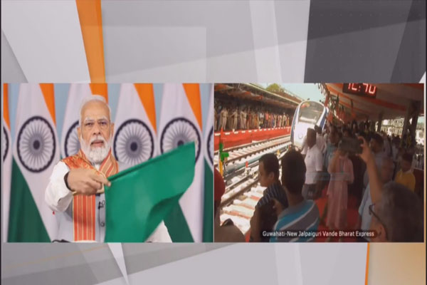 नई दिल्ली : प्रधानमंत्री नरेंद्र मोदी ने सोमवार को वीडियो कॉन्फ्रेंसिंग के जरिए असम की पहली वंदे भारत एक्सप्रेस को हरी झंडी दिखाई, जो गुवाहाटी को न्यू जलपाईगुड़ी से जोड़ेगी। उन्होंने इस मौके पर पिछली सरकारों पर भ्रष्टाचार में शामिल होने और पूर्वोत्तर राज्यों की कनेक्टिविटी तथा विकास की उपेक्षा करने के लिए उन पर कटाक्ष किया। सेमी-हाई स्पीड ट्रेन के साथ, मोदी ने न्यू बोंगाईगांव-दुधनोई-मेंडीपाथेर और गुवाहाटी-चापरमुख विद्युतीकृत रेल खंड भी राष्ट्र को समर्पित किए। उन्होंने लुमडिंग में नए डेमू/मेमू (ट्रेनों के लिए वर्कशॉप) शेड का भी उद्घाटन किया।