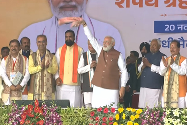 शपथ ग्रहण समारोह में पीएम मोदी ने झुककर किया शुक्रिया तो गमछा लहराकर भरा जोश