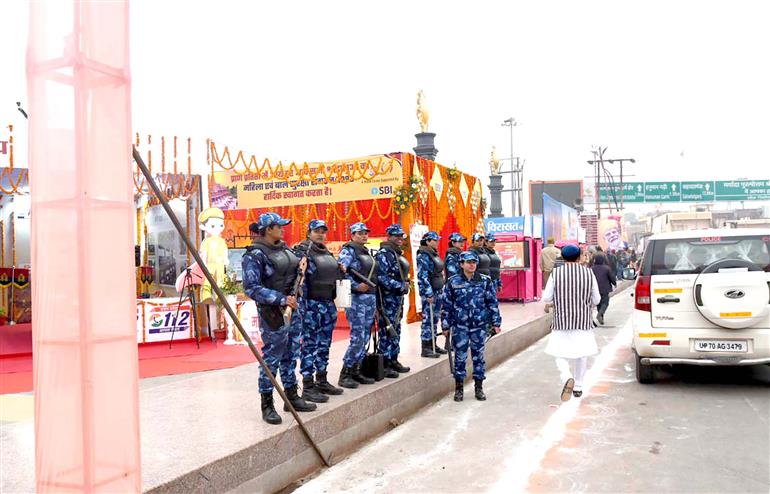 अयोध्या में सुरक्षा व्यवस्था हेतु NDRF टीमों, बॉम्ब स्क्वाड और डॉग स्क्वायड, आरपीएफ कर्मियों सहित लगभग करीबी 13,000 बल तैनात किए गए हैं। वहीं, राष्ट्रीय आपदा प्रतिक्रिया बल (NDRF) ने आकस्मिक स्थिति का जवाब देने के लिए अयोध्या में मंदिर के पास एक शिविर स्थापित किया है। इस बाबत उत्तर प्रदेश के डीजी (कानून और व्यवस्था) प्रशांत कुमार ने कहा कि तैनात 13,000 बलों के अलावा, पुलिस अयोध्या में सुरक्षा व्यवस्था को बेहतर बनाने के लिए आर्टिफिशियल इंटेलिजेंस से संचालित सीसीटीवी का उपयोग कर रही है।