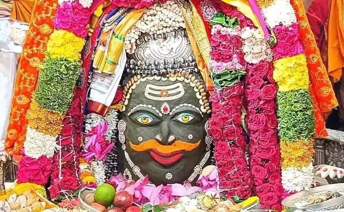 उज्जैन : विश्व प्रसिद्ध श्री महाकालेश्वर मंदिर में ज्येष्ठ शुक्ल पक्ष की चतुर्थी तिथि पर सोमवार तड़के भस्म आरती के दौरान चार बजे मंदिर के पट खोले गए। गर्भगृह में स्थापित सभी भगवान की प्रतिमाओं का पण्डे पुजारी ने पूजन किया, तत्पश्चात दूध, दही, घी, शक्कर पंचामृत और फलों के रस से भगवान महाकाल का जलाभिषेक किया। इसके बाद प्रथम घंटाल बजाकर हरि ओम का जल अर्पित किया गया। कपूर आरती के बाद बाबा महाकाल को नवीन मुकुट, मुंड माला धारण करवाई गई।