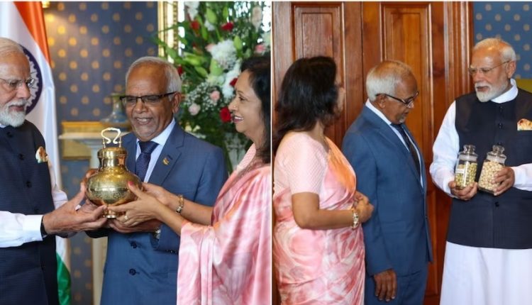 नई दिल्ली: दो दिवसीय दौरे पर मॉरीशस पहुंचे प्रधानमंत्री नरेंद्र मोदी (Prime Minister Narendra Modi) ने राष्ट्रपति धरमबीर गोखुल (President Dharambir Gokul) से मुलाकात की है. इस दौरान उन्होंने मॉरीशस के राष्ट्रपति को भारतीय संस्कृति से जुड़ी कई चीजें भेंट की जिसमें बिहार का सुपरफूड मखाना और महाकुंभ से संगम का जल शामिल है. पीएम मोदी ने राष्ट्रपति गोखुल की पत्नी वृंदा गोखुल को बनारसी सिल्क की साड़ी भी भेंट की.
