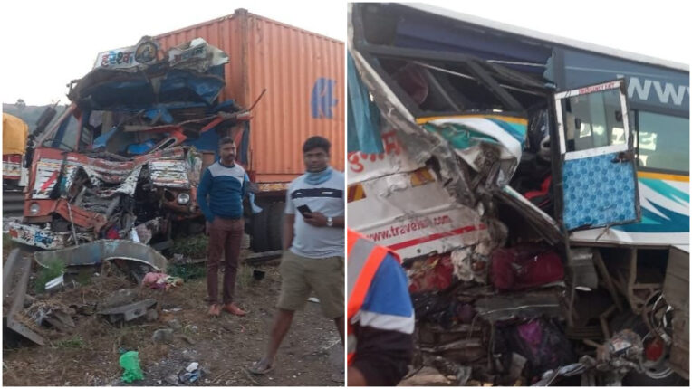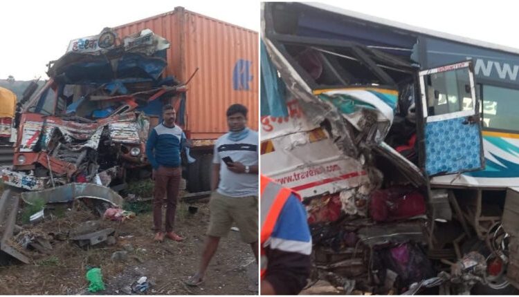 महाराष्ट्र में बड़ा हादसा: रायगढ़ में बारात से लौट रही बस को कंटेनर ने मारी पीछे से टक्कर, एक की मौत, 10 लोग घायल