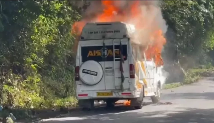 बस चालक के पैर के पास से उठनी शुरू हुईं लपटें