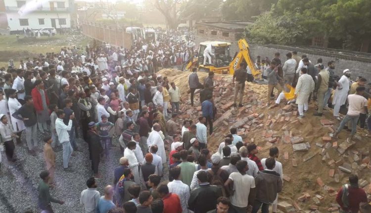 मऊ: यूपी के मऊ में घोसी कस्बा के अस्करी स्कूल के पास शुक्रवार को दिन में तीन बजे चहारदीवारी काल बन गई। हल्दी की रस्म अदायगी करने जा रही भीड़ पर अचानक हाता की दीवार ढह गई। इसकी वजह से दो मासूमों सहित छह लोगों की मौत हो गई। इसके साथ ही 36 लोग घायल हो गए। घायलों को उपचार के लिए जिला व आजमगढ़ के अस्पतालों में भर्ती कराया गया है। सूचना पाकर आला अफसर व प्रशासनिक अमला मौके पर पहुंचा और जेसीबी से दीवार का मलवा हटाकर लोगों को बाहर निकाला। घटना के बाद मौके पर अफरातफरी मच गई।जिलाधिकारी अरुण कुमार व एसपी अविनाश पांडेय मौके पर पहुंचकर सभी लोगों को बाहर निकलवा कर तुरन्त जिला अस्पताल भेजवाया। इसके बाद जिला अस्पताल मे टीम लगाकर इलाज करने का निर्देश दिया और घायलों पर नजर बनाए रखें। सूचना के बाद आइजी अखिलेश कुमार भी घायलों का हाल चाल लेने प्रकाश हास्पिटल पहुंच गए।