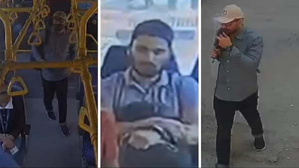 इस के बाद 02:04 PM पर संदिग्ध बस संख्या KA57F4233 में दिखायी देता है और यहां उसने पर्पल कलर का हाफ T शर्ट और ब्लैक कैप पहन रखा है. चेहरे पर मास्क तो है पर चश्मा अब ग़ायब है.
