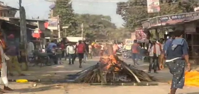 गरौल थाना क्षेत्र का मामला, बीच चौराहे पर जली चिता