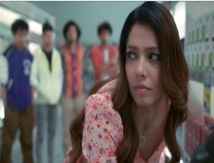 साथ ही शॉट का एक शीशी भी रखी होती है। तभी लड़के बात करते हैं कि हम चार है और यहां सिर्फ एक है, तो शॉट कौन लेगा। तभी लड़की पीछे मुड़ती है और वह उन लोगों की बातों से डरी हुई दिखाई देती है। लड़की के चेहरे पर गुस्सा भी दिखता है। उसे लगता है कि वे लोग उसके बारे में बात कर रहे थे।