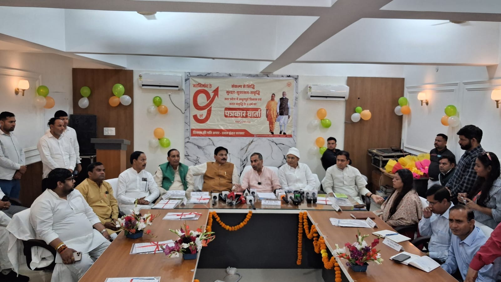 गौतम बुद्ध नगर: गौतम बुद्ध नगर में उत्तर प्रदेश सरकार के 9 वर्ष पूर्ण होने के उपलक्ष्य में कलेक्ट्रेट सभागार में प्रभारी मंत्री बृजेश सिंह ने प्रेस वार्ता कर प्रदेश सरकार की उपलब्धियों पर विस्तार से प्रकाश डाला। इस अवसर पर जनपद की 9 वर्षों की उपलब्धियों पर आधारित पुस्तिका का भी विमोचन किया गया। कार्यक्रम में विधान परिषद सदस्य नरेंद्र भाटी, विधायक जेवर धीरेंद्र सिंह, विधायक दादरी तेजपाल नागर, जिला पंचायत अध्यक्ष अमित चौधरी, भाजपा जिलाध्यक्ष अभिषेक शर्मा, महानगर अध्यक्ष महेश चौहान एवं जिलाधिकारी सहित अन्य जनप्रतिनिधि मौजूद रहे।