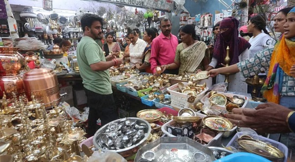 नई दिल्ली : धनतेरस के दिन शुक्रवार को देशभर के खुदरा बाजारों में जबरदस्त भीड़ (Huge crowd) देखने को मिली। सोने-चांदी के अलावा वाहनों, इलेक्ट्रॉनिक्स, बर्तन और अन्य उत्पादों की भी अच्छी खरीद-बिक्री हुई। कन्फेडरेशन ऑफ ऑल इंडिया ट्रेडर्स (कैट) के मुताबिक, धनतेरस पर देशभर के खुदरा बाजारों में 50,000 करोड़ रुपये से अधिक का कारोबार हुआ। अकेले दिल्ली में 5,000 करोड़ रुपये की खरीद-बिक्री हुई। पिछले धनतेरस पर कुल 35,000 करोड़ का कारोबार हुआ था।