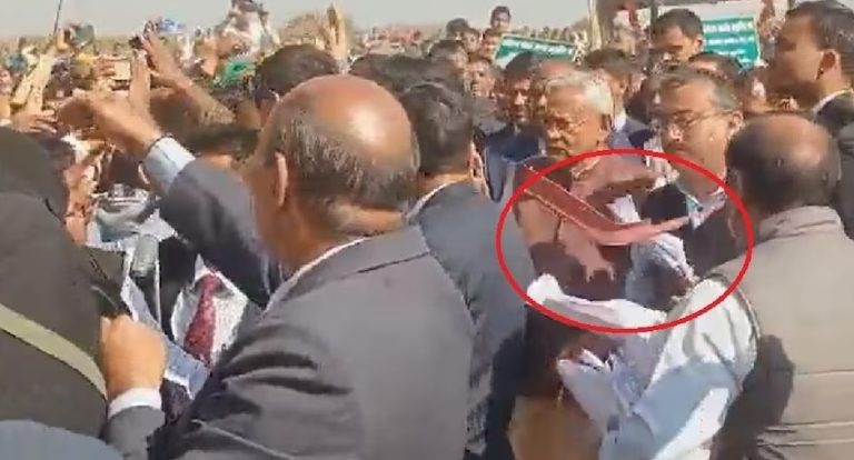 इससे लोग आक्रोशित हो गए और वहा कुर्सिया पटकने लगे और फिर टूटी कुर्सी का एक टुकड़ा सीएम नीतीश कुमार की तरफ फेंक दिया जो उनके ठीक चेहरे के सामने से गुजरा. सीएम कुर्सी के टुकड़े से बाल- बाल बचे.
