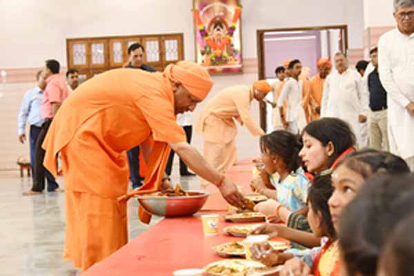पूजन के बाद इन कन्याओं को मंदिर की रसोई में पकाया गया ताजा भोजन प्रसाद सीएम योगी ने अपने हाथों से परोसा। कन्याओं के अतिरिक्त बड़ी संख्या में पहुंचे बटुकों को भी श्रद्धापूर्वक भोजन कराकर उपहार और दक्षिणा दिया गया।