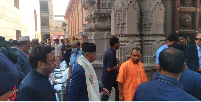 बाबा काल भैरव मंदिर में दर्शन पूजन करने के बाद नेपाल के पीएम और उनकी पत्नी श्रीकाशी विश्वनाथ मंदिर में दर्शन पूजन करने पहुंचे। बाबा दरबार के गर्भगृह में वैदिक रीति-रिवाजों के साथ नेपाल के पीएम ने बाबा काशी विश्वनाथ का अभिषेक किया (Nepal PM in Banaras)।
