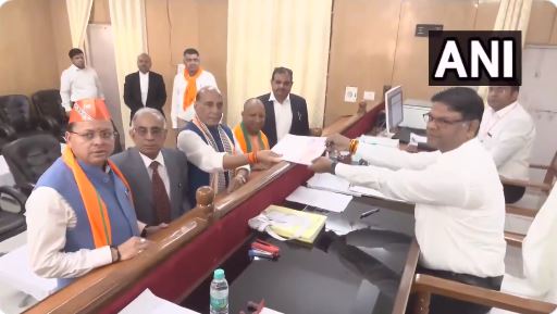 लखनऊ : केंद्रीय रक्षा मंत्री और लखनऊ लोकसभा सीट से बीजेपी उम्मीदवार राजनाथ सिंह ने नामांकन दाखिल किया। इस दौरान मुख्यमंत्री योगी आदित्यनाथ, उत्तराखंड के सीएम पुष्कर सिंह धामी मौजूद रहें।