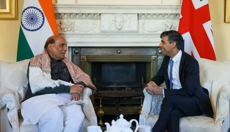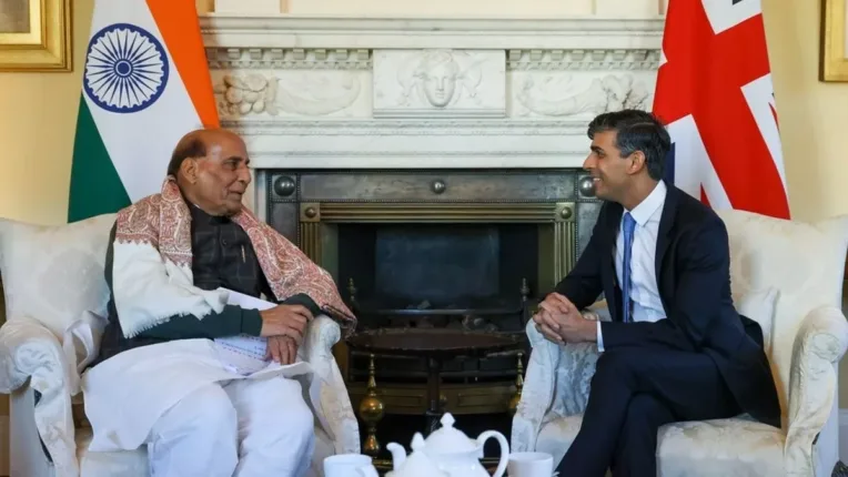 नई दिल्ली: भारतीय रक्षा मंत्री राजनाथ सिंह (Indian Defense Minister Rajnath Singh) इन दिनों ब्रिटेन के दौरे पर हैं। बुधवार को उन्होंने यहां 10 डाउनिंग स्ट्रीट (Downing Street) में ब्रिटिश प्रधानमंत्री ऋषि सुनक (British Prime Minister Rishi Sunak) से मुलाकात की और कई द्विपक्षीय मुद्दों पर चर्चा की। बैठक में रक्षा, व्यापार और क्षेत्रीय मुद्दे वार्ता के एजेंडों में थे। साथ ही मुक्त व्यापार समझौते (एफटीए) की प्रगति को लेकर भी चर्चा की गई।