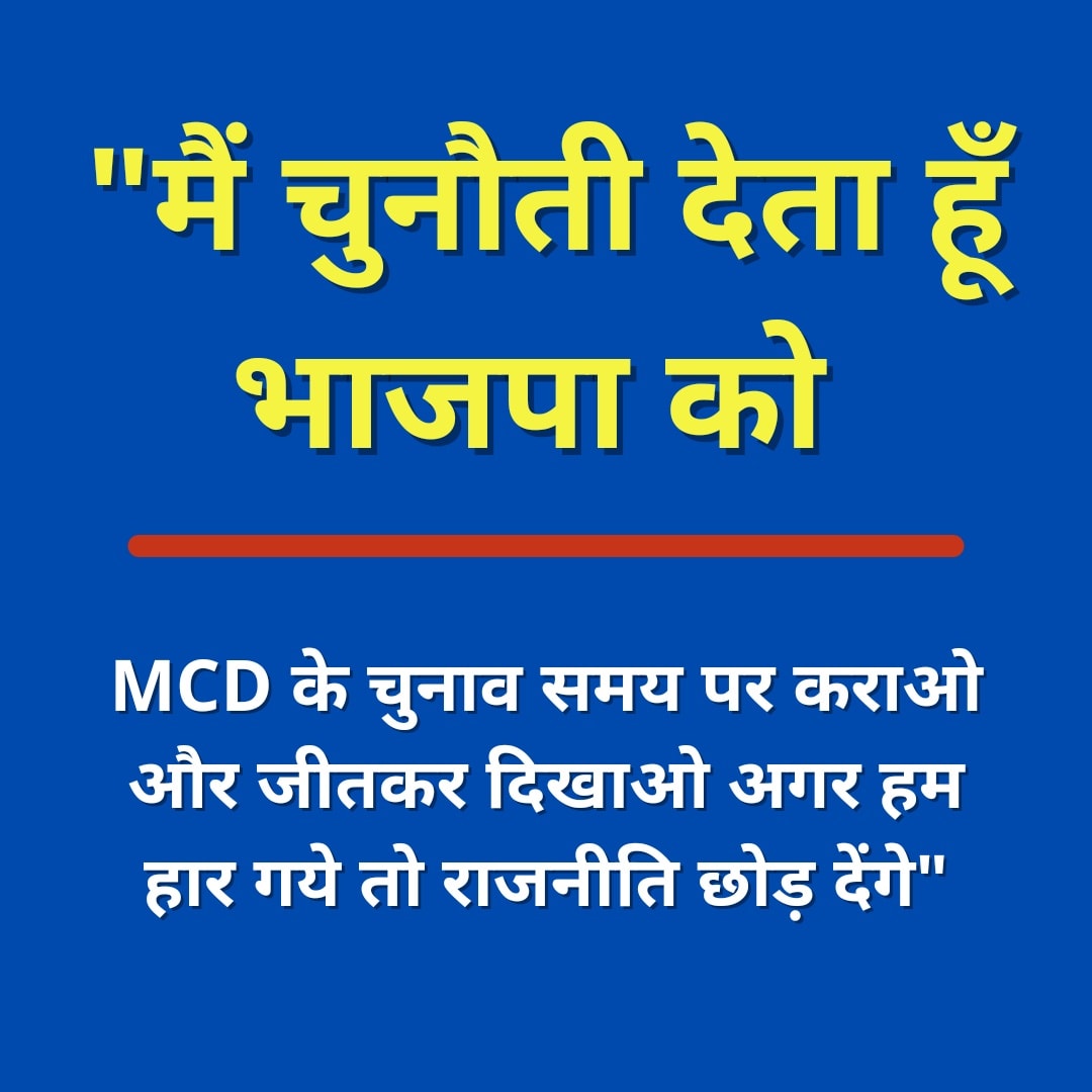 भाजपा अपने आप को दुनिया की सबसे बड़ी पार्टी कहती है। कमाल है। दुनिया की सबसे बड़ी पार्टी एक छोटी सी आम आदमी पार्टी से घबरा के भाग गयी? हिम्मत है तो MCD के चुनाव टाइम पे करवा के दिखाओ..