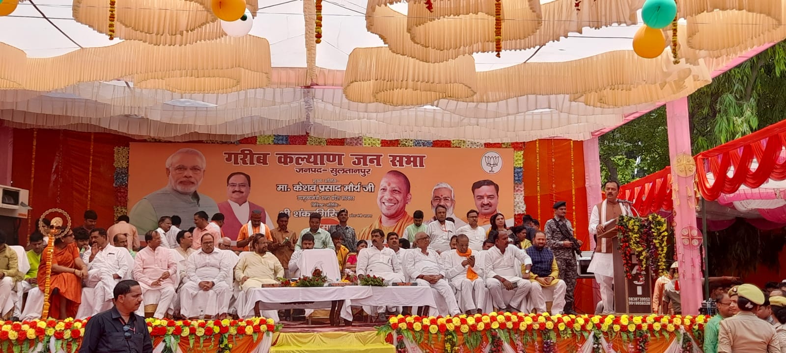 लखनऊ: उपमुख्यमंत्री केशव प्रसाद मौर्य आज जनपद सुलतानपुर स्थित पं0 राम नरेश त्रिपाठी सभागार के प्रांगण में आयोजित गरीब कल्याण जन सभा कार्यक्रम में मुख्य अतिथि के रूप में सम्मिलित हुए। कार्यक्रम के मुख्य अतिथि उप मुख्यमंत्री जी द्वारा दीप प्रज्जवलित कर कार्यक्रम का शुभारम्भ किया गया। मा0 उपमुख्यमंत्री, उ0प्र0 द्वारा गोल्डन स्पिन गर्ल अनन्या श्रीवास्तव, आई.ए.एस. में चयनित हुई अरीबा नोमान, चिकित्सा क्षेत्र में डॉ0 ए.एन. सिंह, शिक्षा क्षेत्र में मुनेन्द्र मिश्रा, रक्तदान क्षेत्र में आशुतोष श्रीवास्तव, नशा उन्मूलन क्षेत्र में पवित्र सक्सेना सहित अन्य प्रतिभाओं में शामिल व विभिन्न क्षेत्रों में अच्छा कार्य करने वाले लोगों को अंगवस्त्र व स्मृति चिन्ह देकर सम्मानित किया गया।