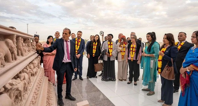 आपको बता दें कि इस मंदिर का दौरा करने वाले राजदूतों और वरिष्ठ राजनयिकों में अर्जेंटीना, आर्मेनिया, बहरीन, बांग्लादेश, बोस्निया और हर्जेगोविना, कनाडा, चाड, चिली, साइप्रस, चेक गणराज्य, डोमिनिकन गणराज्य, मिस्र, यूरोपीय संघ, फिजी, गाम्बिया, जर्मनी के राजदूत और वरिष्ठ राजनयिक शामिल हैं. साथ ही घाना, आयरलैंड, इज़राइल, इटली, मोल्दोवा, मोंटेनेग्रो, नेपाल, नीदरलैंड, न्यूजीलैंड, नॉर्वे, नाइजीरिया, पनामा, फिलीपींस, पोलैंड, सेशेल्स, सिंगापुर, श्रीलंका, स्वीडन, सीरिया, थाईलैंड, संयुक्त अरब अमीरात, यूके, अमेरिका, जिम्बाब्वे और जाम्बिया के राजदूत और राजनयिक शामिल हुए थे. सभी राजनेताओं को बच्चों के हाथों से बना एक खूबसूरत पत्थर दिया गया है. जिस पर मंदिर की आकृति बनी है.