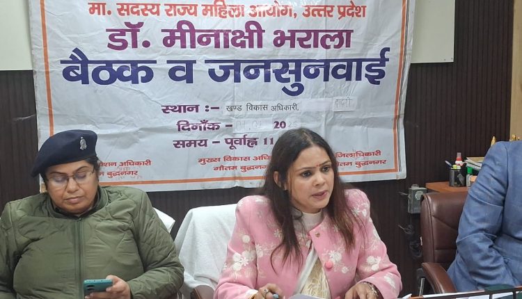 गौतम बुद्ध नगर: उत्तर प्रदेश राज्य महिला आयोग की माननीय सदस्य डॉ. मीनाक्षी भराला की अध्यक्षता में दादरी स्थित खंड विकास अधिकारी कार्यालय के सभागार में महिला जनसुनवाई कार्यक्रम का आयोजन किया गया। कार्यक्रम के दौरान महिलाओं से जुड़े कुल 10 प्रकरण दर्ज किए गए, जिन पर मौके पर ही सुनवाई करते हुए संबंधित अधिकारियों को समयबद्ध समाधान के निर्देश दिए गए।