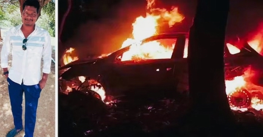 एक पुलिस अधिकारी ने कहा कि नागराजू एक टॉप लेवल भारतीय सॉफ्टवेयर कंपनी के लिए वर्क फ्रॉम होम कर रहे थे। उनकी कार को कथित तौर पर तीन लोगों रिपिंजया, चाणक्य प्रसाद और गोपीनाथ रेड्डी ने शनिवार(1 अप्रैल) की रात नागराजू की कार में आग लगा दी थी।