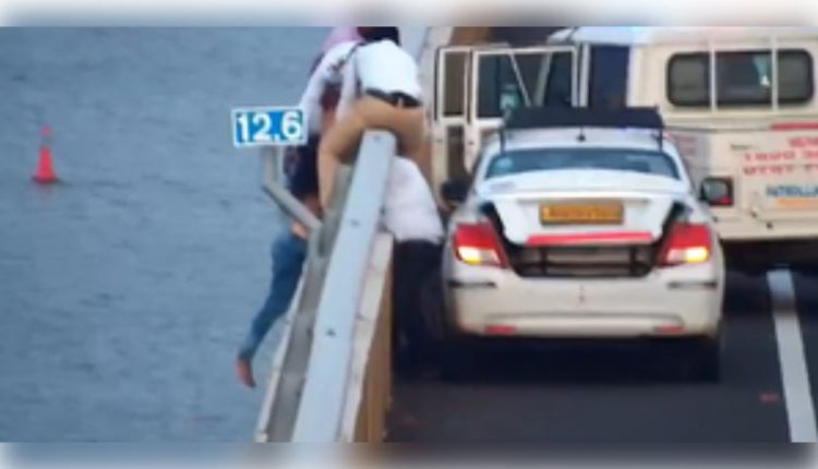 मुंबई। महाराष्ट्र के नवी मुंबई में आत्महत्या की कोशिश करने वाली महिला को पुलिसकर्मियों ने सूझबूझ से बचा लिया। महिला ने अटल सेतु से कूदकर अपनी जान देने की कोशिश की थी। बताया जा रहा है कि शुक्रवार शाम 7 बजे मुंबई से नवी मुंबई को जोड़ने वाले अटल सेतु पर एक महिला पहुंची थी। इस दौरान महिला अटल सेतु पर चढ़ गई और फ्लाईओवर से समंदर में कूदने की कोशिश करने लगी।