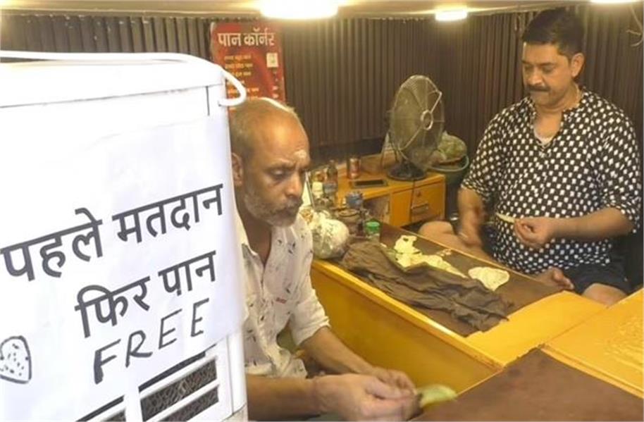 दरअसल, वाराणसी के नीचीबाग इलाके में सड़क किनारे एक पान की दुकान में उन लोगों को फ्री में पान मिल रहा है जो वोट डालकर आ रहे हैं। वोटर उंगली पर स्याही का लगा निशान दिखा रहे हैं और पान विक्रेता उन्हें पान दे रहा है वो भी बिना कोई पैसे लिए। विक्रेता की यह स्कीम चर्चा का विषय बनी हुई है। वोट प्रतिशत बढ़ाने की इस अनोखी पहल ने हर किसी को अपनी ओर आर्कषित कर लिया है।