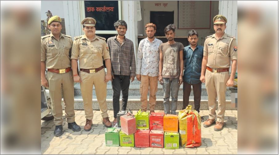 गाजियाबाद : सड़क किनारे खड़ी गाड़ियों की बैटरी चुराने वाले गिरोह का भंडाफोड़, चार गिरफ्तार, 18 बैटरियां बरामद