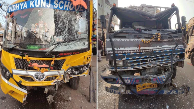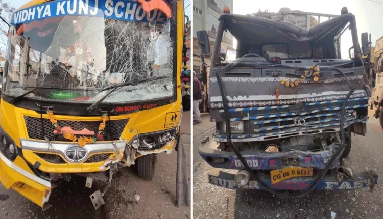 तेज़ रफ्तार का छत्तीसगढ़ में कहर! धमतरी में स्कूली बस-ट्रक में सीधी टक्कर, हादसे में 6 बच्चे और ड्राइवर घायल