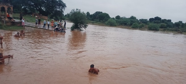 मुरैना के आदिवासी विकास खण्ड पहाडग़ढ़ के जंगल व ग्रामीण क्षेत्रों में तीन दिवस से लगातार वर्षा हो रही है। इससे क्षेत्र के नदी नाले उफान पर है। सोन नदी का पानी रपटा के ऊपर चार फिट आ जाने से लगभग एक दर्जन गांवों का पहाडग़ढ़ से सम्पर्क टूट गया है। यह पानी सैकड़ों बीघा खरीफ फसल के खेतों में प्रवेश कर गया है। इससे सब्जी की फसल भी बर्बाद हो गई है। विदित हो कि सोन नदी के इस रपटे पर पूर्व में भी कई घटनायें हो चुकीं हैं। मुरैना जिले में लगातार रूक-रूक कर हो रही वर्षा के कारण खरीफ की फसल पर संकट छा रहा है। इस वर्षा का विशेष प्रभाव पहाडग़ढ़ क्षेत्र में देखा जा रहा है। बीते 24 घंटों में 16.5 मिलीमीटर वर्षा हुई है। शहरी क्षेत्रों में आवागमन व काम-काज पर जहां प्रभाव देखा गया है, वहीं पहाडग़ढ़ की सोन नदी तेज उफान पर है। पहाडग़ढ़ किले के पीछे बने रपटे पर 4 फुट पानी आ गया है। इससे क्षेत्र के एक दर्जन गांव तिलोंजरी, कहारपुरा, तीर्थ स्थान हनुमान मंदिर, खडरियापुरा, जाजीपुरा, मानपुर, बहराई, निरार, बघेवर, रामनगर, गूलापुरा का सम्पर्क पहाडग़ढ़ से टूट चुका है।