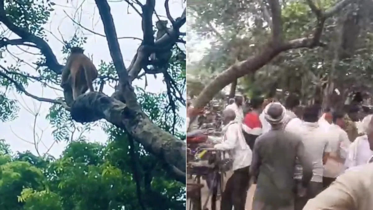 यूपी के औरैया में पेड़ से रुपये की बारिश करने लगा बंदर, तहसील में पैसे लूटने के लिए जुट गई भीड़, वीडियो वायरल