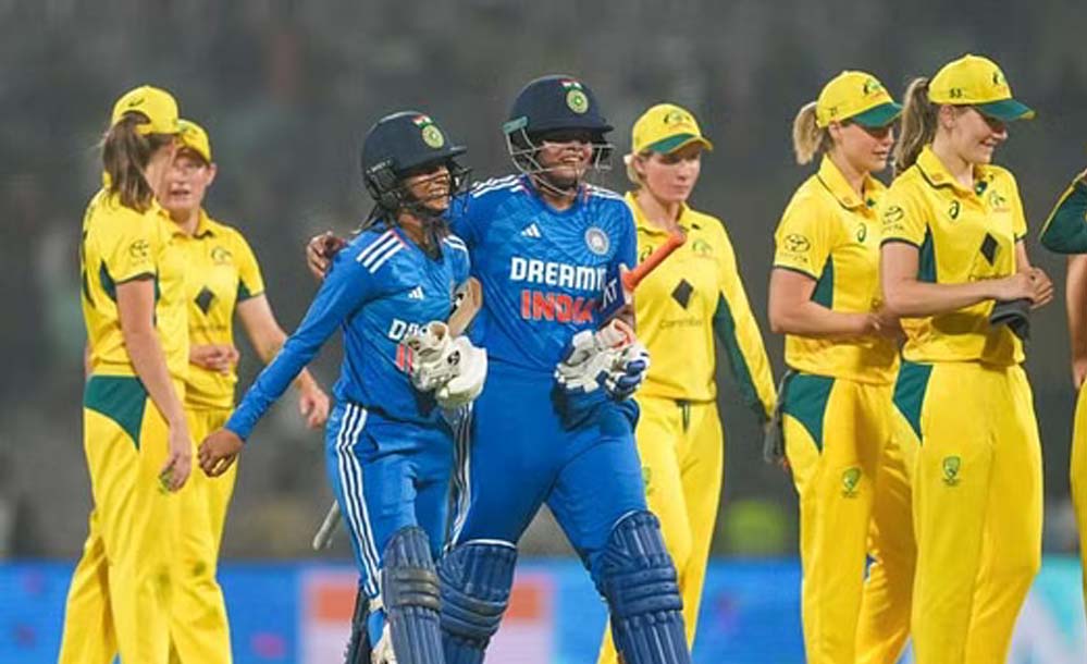 इससे पहले तितास साधु के 17 रन देकर चार विकेट की बदौलत भारतीय महिला टीम ने ऑस्ट्रेलिया को 19.2 ओवर में 141 के स्कोर पर ढेर कर दिया है। आज यहां भारत की कप्तान हरमनप्रीत कौर ने टॉस जीतकर पहले गेंदबाजी करने का फैसला किया है। पहले बल्लेबाजी करने उतरी ऑस्ट्रेलिया की शुरुआत खराब रही और सलामी बल्लेबाज अलिसा हीली आठ रन पर और बेथ मूनी 17 रन बनाकर पवेलियन लौट गई। इसके बाद छठे ओवर में साधु ने तालिया मैक्ग्रा शून्य को भी पवेलियन का रास्ता दिखा कर ऑस्ट्रेलिया को तीसरा झटका दिया।