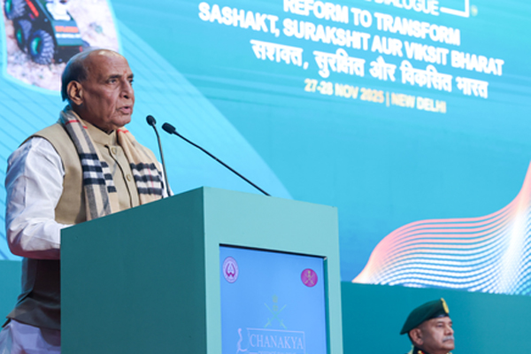भारतीय सेना के इस संवाद कार्यक्रम का इस वर्ष का शीर्षक ‘रिफार्म टू ट्रांसफॉर्म-सशक्त, सुरक्षित और विकसित भारत’ है। यहां राजनाथ सिंह ने कहा कि भारत शांति और संवाद में विश्वास रखता है, लेकिन जब बात संप्रभुता और जनता की सुरक्षा की आती है, तो भारत कोई समझौता नहीं करता। भारतीय सशस्त्र बल राष्ट्र-निर्माण और क्षेत्रीय स्थिरता के सबसे मजबूत स्तंभ हैं। उनकी पेशेवर क्षमता, अनुशासन और दृढ़ता भारत को अपने पड़ोस की चुनौतियों से निपटने की शक्ति देती है। सैन्य नेतृत्व व देश-विदेश के रक्षा विशेषज्ञों के बीच राजनाथ सिंह ने कहा कि भारत आज जिम्मेदारी, रणनीतिक स्वायत्तता और सभ्यतागत मूल्यों के आधार पर वैश्विक चर्चाओं को दिशा दे रहा है।