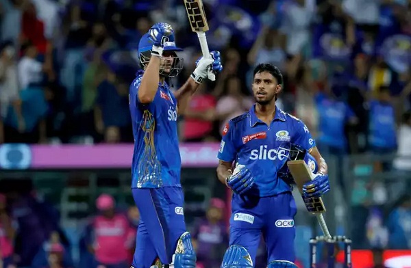 मुंबई : इंडियन प्रीमियर लीग के 1000वें मुकाबले में मुंबई इंडियंस ने राजस्थान रॉयल्स को छह विकेट से हरा दिया है। इस जीत के साथ ही मुंबई इंडियन्स ने वानखेडे स्टेडियम में 213 रन के विशाल लक्ष्य को हासिल कर नया रिकॉर्ड भी बनाया है। मुंबई ने 213 रन के लक्ष्य को तीन गेंद शेष रहते ही हासिल कर लिया। पारी के आखिरी ओवर में मुंबई को जीत के लिए 17 रन की जरूरत थी लेकिन टिम डेविड ने पहली तीन गेंद में तीन छक्के मारकर टीम को जीत दिला दी। इसी के साथ टीम ने अपने कप्तान रोहित शर्मा को जन्मदिन पर जीत का तोहफा दिया।