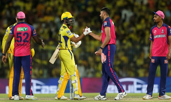 नई दिल्ली : इंडियन प्रीमियर लीग 2024 का 61वां मैच रविवार को चेन्नई सुपर किंग्स (सीएसके) (Chennai Super Kings – CSK) और राजस्थान रॉयल (आरआर) के बीच खेला गया। मैच में चेन्नई सुपर किंग्स ने राजस्थान रॉयल्स (Rajasthan Royals) को पांच विकेट से हरा दिया। चेन्नई के एमए चिदंबरम स्टेडियम में खेले गए इस मुकाबले में राजस्थान की टीम ने टॉस जीतकर पहले बल्लेबाजी की और 20 ओवर में पांच विकेट पर 141 रन बनाए। जवाब में चेन्नई की टीम ने 18.2 ओवर में पांच विकेट पर 145 रन बनाकर जीत दर्ज कर ली।