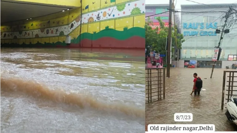 नई दिल्ली: दिल्ली (Delhi) में शनिवार को रिकार्ड तोड़ मूसलाधार बारिश हुई। यह इस मानसून की पहली मूसलाधार बारिश थी। कल के दिन दिल्ली में हुई पहली भारी मूसलाधार बारिश ने 20 सालों का रिकॉर्ड का तोड़ दिया है। वहीं रविवार की सुबह यानी आज भी भारी बारिश का सिलसिला जारी है, जिसे देखते हुए मौसम विभाग ने ऑरेंज अलर्ट भी जारी कर दिया है। बारिश की वजह से राजधानी की कई सड़कें, कई इलाके पानी से लबालब हैं। साथ ही कई तरह की परेशानियां देखने को मिल रही हैं।