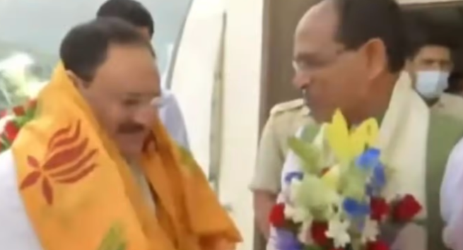 JP Nadda MP Visit:भोपाल पहुंचे भाजपा अध्यक्ष जेपी नड्डा, सीएम शिवराज सिंह चौहान ने भव्य स्वागत