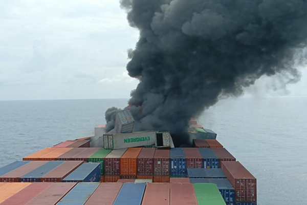 जहाज में आग लगने की घटना केरल के बेपोर-अझिकाल तट से दूर अरब सागर में हुई। कंटेनर जहाज के 18 क्रू मेंबर्स अपनी जान बचाने के लिए समुद्र में कूद गए, जिन्हें सुरक्षित बचाने के बाद, जहाज के फायर एंड सेफ्टी डिपार्टमेंट के चार क्रू मेंबर्स का पता लगाया जा रहा है। घटनास्थल से कुछ तस्वीरें सामने आई हैं जिसमें जहाज के ऊपरी डेक पर आग धधकती हुई देखी जा सकती है।