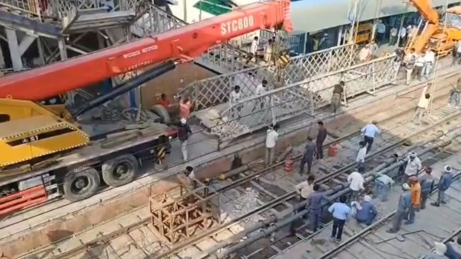 हादसा प्लेटफार्म नंबर चार से पांच और छह पर जाने वाला क्रॉसिंग पुल अचानक से रेलवे ट्रैक पर गिर गया। इसे रेलवे की पानी वाली पाइप लाइन भी टूट गई। पानी की पाइप लाइन टूटने के कारण ट्रेनों में पानी की सप्लाई ठप हो गई। पुल गिरने के बाद प्लेटफार्म पर अफरातफरी मच गई। रेलवे को हादसे की सूचना मिली तो अफसर मौके पर दौड़ पड़े। आनन-फानन में क्रेन मंगवाई गई और ट्रैक पर गिरे पुल को हटाया। क्रेन पुल को हटा रही थी तो अचानक से ट्रेन को पावर देने वाली वायर भी टूट गई, जिसके कारण रेल यातायात की पूरी तरह से बाधित हो गया। रेलवे कर्मचारी क्रॉसिंग पुल को प्लेटफॉर्म से हटाया। हालांकि खबर लिखे जाने तक रेलवे ट्रैक बाधित था। रेलवे अफसरों की मौजूदगी में रेलकर्मी ट्रैक को साफ करने और वायर को दुरुस्त करने में जुटे थे।