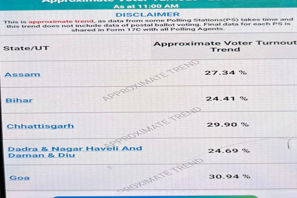 लोकसभा चुनाव 2024: 11 राज्यों की 93 सीटों पर 11बजे तक 24.46% मतदान दर्ज,यहां देखे कहा सबसे अधिक वोटिंग हुई